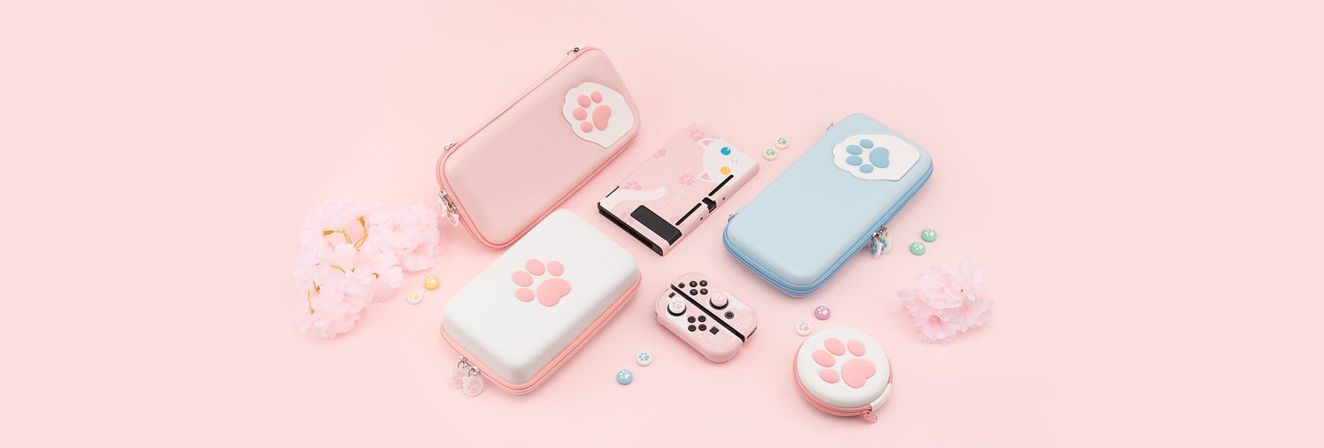 Also included in the collection are a selection of controller carrying cases for full-sized controllers like the Dualshock and Dualsense, Joycon thumb grips, and acrylic game card cases to show off your Switch cartridge collection.