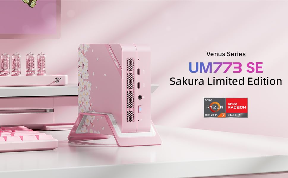 Pretty in pink with a sakura design, this limited edition mini PC comes with an AMD Ryzen 7 7735HS processor and Radeon 680M graphics. The current available configuration on Amazon US is also pre-installed with 32GB of DDR5 RAM and 512GB of storage, which should be enough for some basic content creation and multi-tasking.